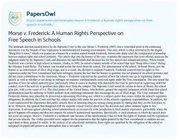 Morse v. Frederick: A Human Rights Perspective on Free Speech in Schools. (2023, Nov 24). Retrieved from https://hub.papersowl.com/examples/morse-v-frederick-a-human-rights-perspective-on-free-speech-in-schools/