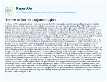 "Mother to Son" by Langston Hughes. (2021, May 29). Retrieved from https://hub.papersowl.com/examples/mother-to-son-by-langston-hughes/