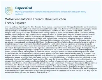 Motivation’s Intricate Threads: Drive Reduction Theory Explored
