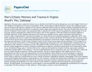 War's Echoes: Memory and Trauma in Virginia Woolf's 'Mrs. Dalloway'. (2019, Jan 02). Retrieved from https://hub.papersowl.com/examples/mrs-dalloway-and-the-war/