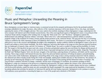 Music and Metaphor: Unraveling the Meaning in Bruce Springsteen’s Songs. (2023, Nov 24). Retrieved from https://hub.papersowl.com/examples/music-and-metaphor-unraveling-the-meaning-in-bruce-springsteens-songs/