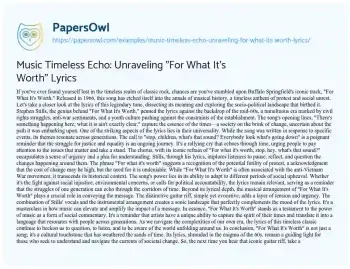 Music Timeless Echo: Unraveling "For What It's Worth" Lyrics. (2024, Jan 26). Retrieved from https://hub.papersowl.com/examples/music-timeless-echo-unraveling-for-what-its-worth-lyrics/