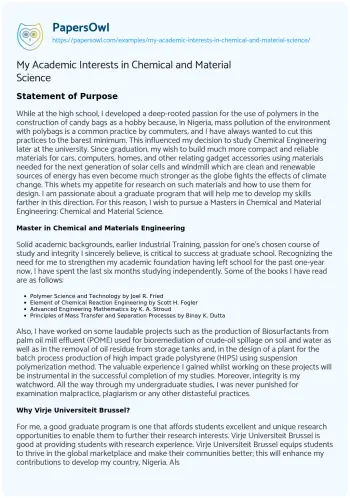 My Academic Interests in Chemical and Material Science. (2021, Oct 18). Retrieved from https://hub.papersowl.com/examples/my-academic-interests-in-chemical-and-material-science/
