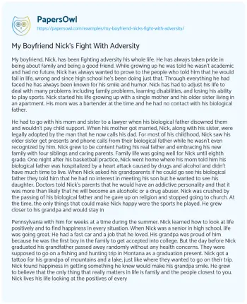 My Boyfriend Nick's Fight With Adversity. (2022, Nov 14). Retrieved from https://hub.papersowl.com/examples/my-boyfriend-nicks-fight-with-adversity/