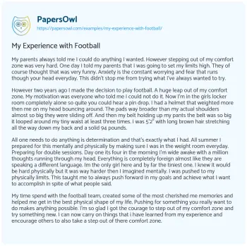 My Experience with Football. (2019, Sep 12). Retrieved from https://hub.papersowl.com/examples/my-experience-with-football/