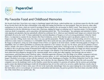 My Favorite Food and Childhood Memories. (2021, Oct 18). Retrieved from https://hub.papersowl.com/examples/my-favorite-food-and-childhood-memories/