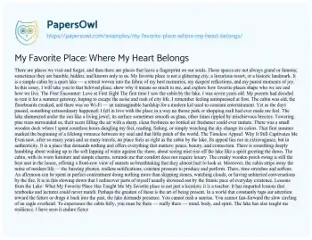 There are places we visit and forget, and then there are places that leave a fingerprint on our souls. These spaces are not always grand or famous; sometimes they are humble, hidden, and known only to us. My favorite place is not a glittering city, a luxurious resort, or a historic landmark. It is a simple cabin by a quiet lake — a retreat woven into the fabric of my best memories, my deepest reflections, and my purest moments of joy. In this essay, I will take you to that beloved place, show why it means so much to me, and explore how favorite places shape who we are and how we live.