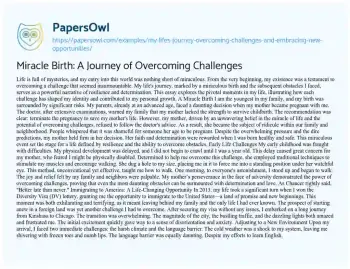 Miracle Birth: A Journey of Overcoming Challenges. (2023, Aug 04). Retrieved from https://hub.papersowl.com/examples/my-lifes-journey-overcoming-challenges-and-embracing-new-opportunities/