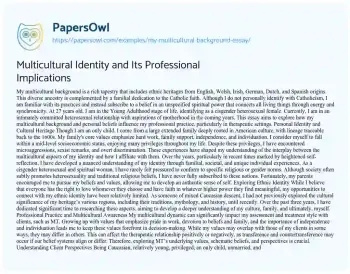 Multicultural Identity and Its Professional Implications. (2021, May 10). Retrieved from https://hub.papersowl.com/examples/my-multicultural-background-essay/
