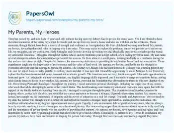 My Parents, My Heroes. (2021, Oct 19). Retrieved from https://hub.papersowl.com/examples/my-parents-my-hero/