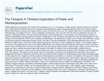 The Tempest: A Timeless Exploration of Power and Misinterpretation. (2021, Apr 15). Retrieved from https://hub.papersowl.com/examples/mystery-in-play-the-tempest-by-shakespeare/