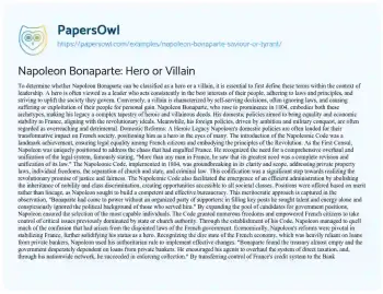 Napoleon Bonaparte: Hero or Villain. (2021, Jun 03). Retrieved from https://hub.papersowl.com/examples/napoleon-bonaparte-saviour-or-tyrant/
