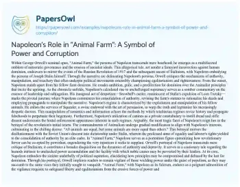 Napoleon's Role in "Animal Farm": A Symbol of Power and Corruption. (2024, Mar 18). Retrieved from https://hub.papersowl.com/examples/napoleons-role-in-animal-farm-a-symbol-of-power-and-corruption/