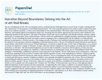 Narration Beyond Boundaries: Delving into the Art of 4th Wall Breaks. (2023, Nov 24). Retrieved from https://hub.papersowl.com/examples/narration-beyond-boundaries-delving-into-the-art-of-4th-wall-breaks/