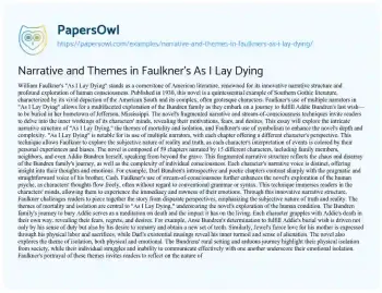 Narrative and Themes in Faulkner’s As I Lay Dying