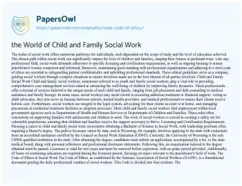 the World of Child and Family Social Work. (2019, Jan 10). Retrieved from https://hub.papersowl.com/examples/nasw-code-of-ethics/