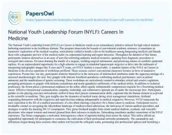 National Youth Leadership Forum (NYLF): Careers In Medicine. (2024, May 01). Retrieved from https://hub.papersowl.com/examples/national-youth-leadership-forum-nylf-careers-in-medicine/