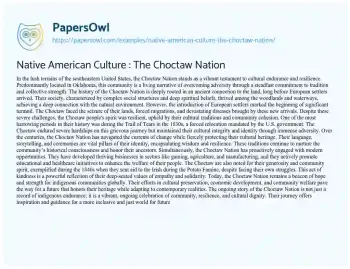 Native American Culture : The Choctaw Nation. (2024, Apr 22). Retrieved from https://hub.papersowl.com/examples/native-american-culture-the-choctaw-nation/