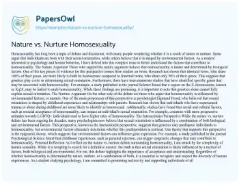 Nature vs. Nurture Homosexuality. (2025, Dec 10). Retrieved from https://hub.papersowl.com/examples/nature-vs-nurture-homosexuality/