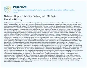 Nature's Unpredictability: Delving into Mt. Fuji's Eruption History. (2023, Dec 28). Retrieved from https://hub.papersowl.com/examples/natures-unpredictability-delving-into-mt-fujis-eruption-history/