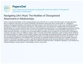 Navigating Life's Maze: The Realities of Disorganized Attachment in Relationships. (2024, Feb 01). Retrieved from https://hub.papersowl.com/examples/navigating-lifes-maze-the-realities-of-disorganized-attachment-in-relationships/