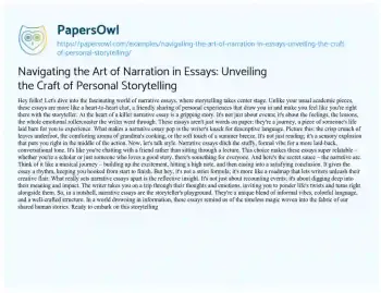 Navigating the Art of Narration in Essays: Unveiling the Craft of Personal Storytelling. (2024, Feb 01). Retrieved from https://hub.papersowl.com/examples/navigating-the-art-of-narration-in-essays-unveiling-the-craft-of-personal-storytelling/