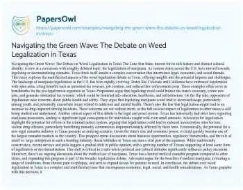 Navigating the Green Wave: The Debate on Weed Legalization in Texas. (2023, Dec 01). Retrieved from https://hub.papersowl.com/examples/navigating-the-green-wave-the-debate-on-weed-legalization-in-texas/