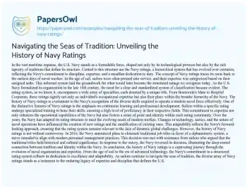 Navigating the Seas of Tradition: Unveiling the History of Navy Ratings. (2023, Nov 24). Retrieved from https://hub.papersowl.com/examples/navigating-the-seas-of-tradition-unveiling-the-history-of-navy-ratings/