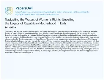 Navigating the Waters of Women's Rights: Unveiling the Legacy of Republican Motherhood in Early America. (2024, Feb 01). Retrieved from https://hub.papersowl.com/examples/navigating-the-waters-of-womens-rights-unveiling-the-legacy-of-republican-motherhood-in-early-america/
