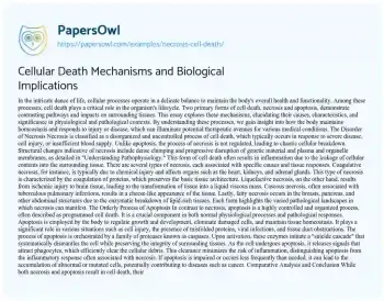 Cellular Death Mechanisms and Biological Implications. (2019, Feb 22). Retrieved from https://hub.papersowl.com/examples/necrosis-cell-death/