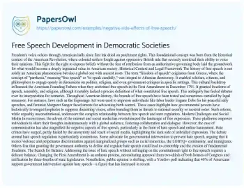 Free Speech Development in Democratic Societies. (2020, Nov 03). Retrieved from https://hub.papersowl.com/examples/negative-side-effects-of-free-speech/