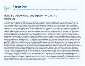Nellie Bly's Groundbreaking Exposé: "10 Days in a Madhouse". (2024, May 12). Retrieved from https://hub.papersowl.com/examples/nellie-blys-groundbreaking-expose-10-days-in-a-madhouse/