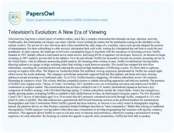 Television's Evolution: A New Era of Viewing. (2020, May 12). Retrieved from https://hub.papersowl.com/examples/netflix-is-television-now/