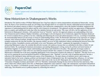 New Historicism in Shakespeare's Works. (2019, Mar 06). Retrieved from https://hub.papersowl.com/examples/new-historicism-the-interrelation-of-art-and-society-in-macbeth/