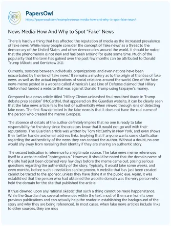 News Media: How And Why to Spot "Fake" News. (2020, Apr 07). Retrieved from https://hub.papersowl.com/examples/news-media-how-and-why-to-spot-fake-news/