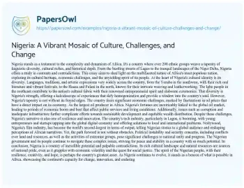 Nigeria: A Vibrant Mosaic of Culture, Challenges, and Change. (2024, Mar 01). Retrieved from https://hub.papersowl.com/examples/nigeria-a-vibrant-mosaic-of-culture-challenges-and-change/