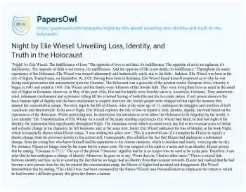 Night by Elie Wiesel: Unveiling Loss, Identity, and Truth in the Holocaust. (2023, Aug 02). Retrieved from https://hub.papersowl.com/examples/night-by-elie-wiesel-unveiling-loss-identity-and-truth-in-the-holocaust/