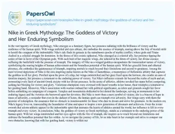 Nike in Greek Mythology: The Goddess of Victory and Her Enduring Symbolism. (2024, May 12). Retrieved from https://hub.papersowl.com/examples/nike-in-greek-mythology-the-goddess-of-victory-and-her-enduring-symbolism/