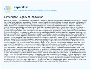 Nintendo: A Legacy of Innovation. (2019, May 28). Retrieved from https://hub.papersowl.com/examples/nintendo-switch-analysis/