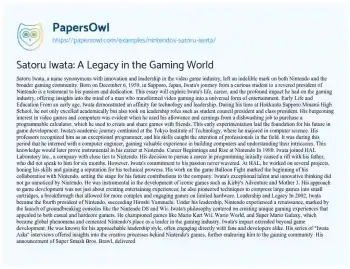 Satoru Iwata: A Legacy in the Gaming World. (2020, Jan 11). Retrieved from https://hub.papersowl.com/examples/nintendos-satoru-iwata/