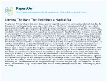 Nirvana: The Band That Redefined a Musical Era. (2024, Mar 01). Retrieved from https://hub.papersowl.com/examples/nirvana-the-band-that-redefined-a-musical-era/