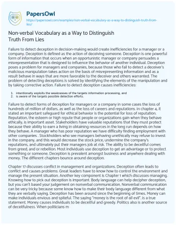Non-verbal Vocabulary as a Way to Distinguish Truth From Lies. (2022, Aug 24). Retrieved from https://hub.papersowl.com/examples/non-verbal-vocabulary-as-a-way-to-distinguish-truth-from-lies/