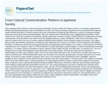 Cross Cultural Communication Patterns in Japanese Society. (2023, Aug 18). Retrieved from https://hub.papersowl.com/examples/nonverbal-communication-japans-cultural-nuances/