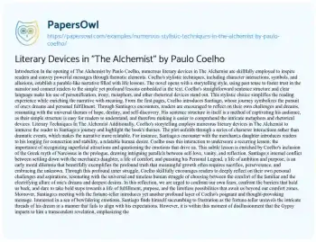 Literary Devices in "The Alchemist" by Paulo Coelho. (2019, Dec 24). Retrieved from https://hub.papersowl.com/examples/numerous-stylistic-techniques-in-the-alchemist-by-paulo-coelho/