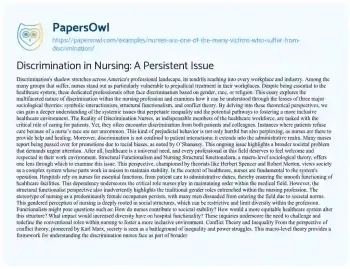 Discrimination in Nursing: A Persistent Issue. (2021, Mar 16). Retrieved from https://hub.papersowl.com/examples/nurses-are-one-of-the-many-victims-who-suffer-from-discrimination/