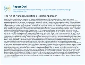 The Art of Nursing: Adopting a Holistic Approach. (2023, Jun 15). Retrieved from https://hub.papersowl.com/examples/nursing-as-an-art-and-science-connecting-through-compassionate-care/