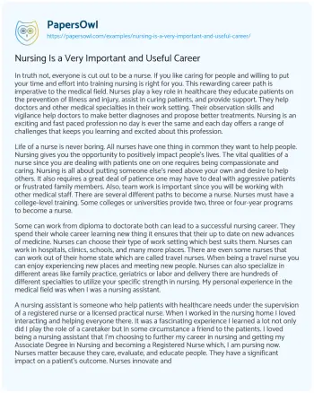 Nursing Is a Very Important and Useful Career. (2022, Aug 23). Retrieved from https://hub.papersowl.com/examples/nursing-is-a-very-important-and-useful-career/