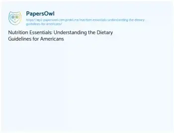 Nutrition Essentials: Understanding the Dietary Guidelines for Americans. (2024, Mar 25). Retrieved from https://hub.papersowl.com/examples/nutrition-essentials-understanding-the-dietary-guidelines-for-americans/
