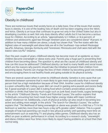 Obesity in childhood. (2019, Jul 26). Retrieved from https://hub.papersowl.com/examples/obesity-in-childhood/
