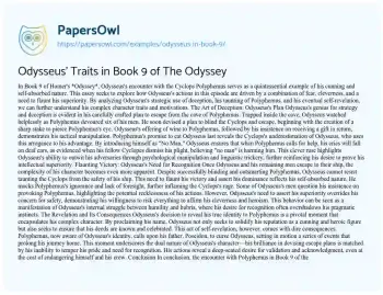 Odysseus’ Traits in Book 9 of The Odyssey